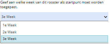 Een rooster kies je voor een periode. Het startpunt van een rooster kun je bepalen door een week te selecteren. Dit kan handig zijn in de periode van indiensttreding.