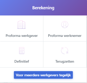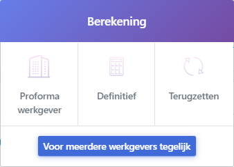 Wanneer je op het rekenmachine icoontje klikt, vanuit het werkgevermenu, zullen er 3 opties verschijnen.